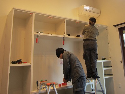 そして棚となるパネルを現場で組み上げし