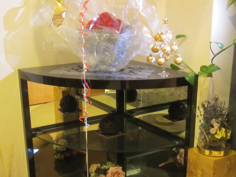 一番上の段は中が見えるよう天板をガラスにしました。