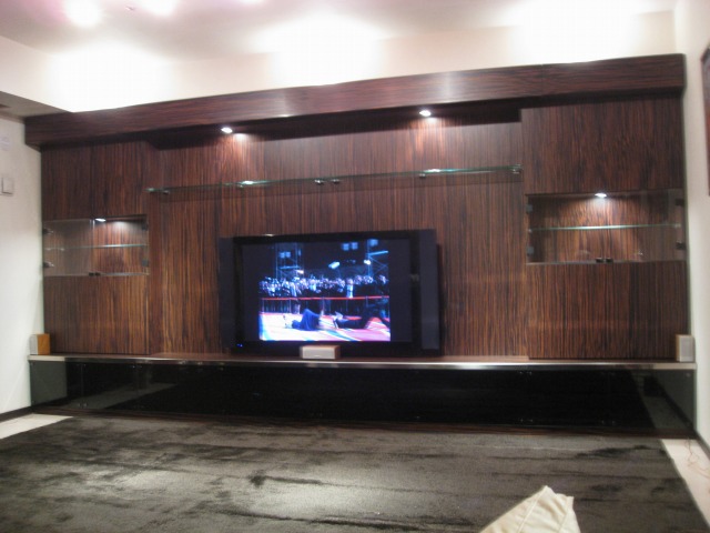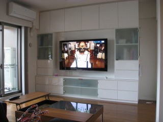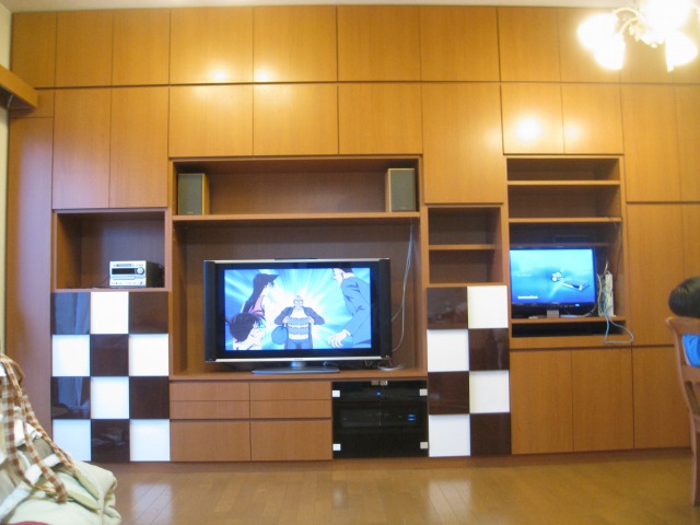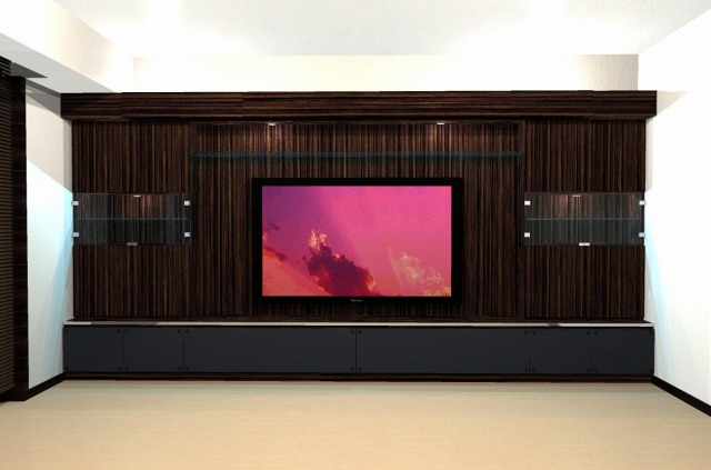 AV配線は表に露出しないよう、背板の裏を通してます。