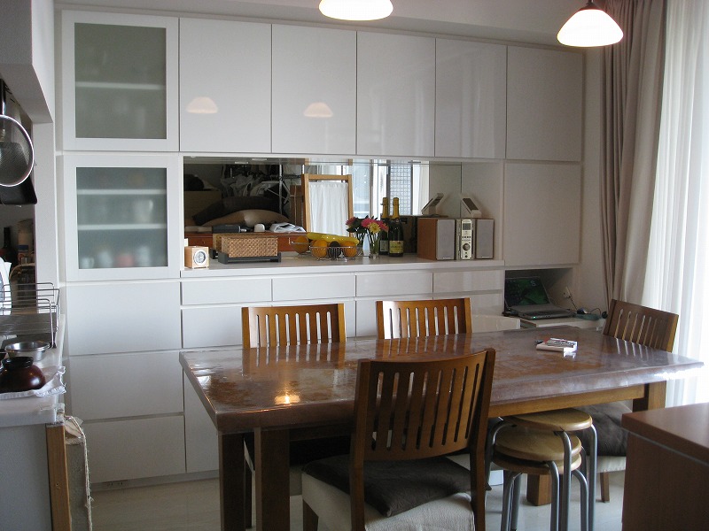 食器棚の戸はリビング壁面収納棚にあわせ、