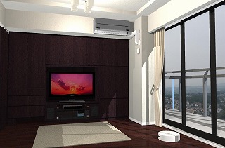 コンピュータグラフィックスではテレビ脇に棚があるタイプと