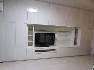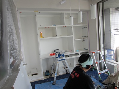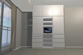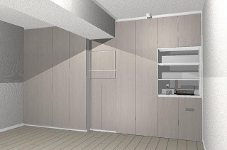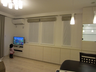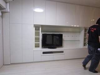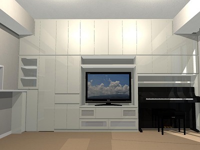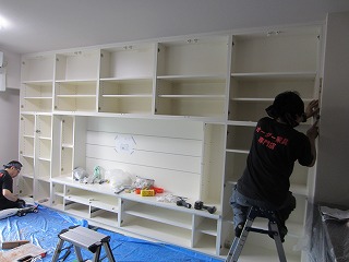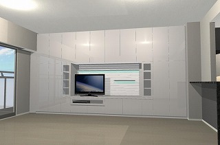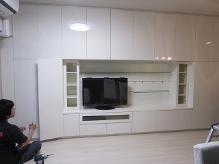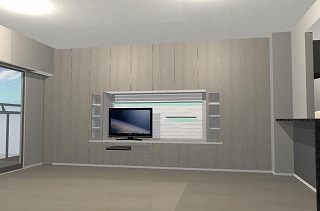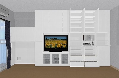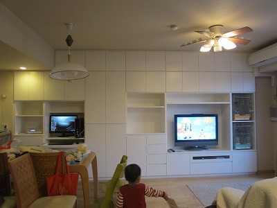 0さん宅(豊島区)に設置したリビング壁面収納です。
