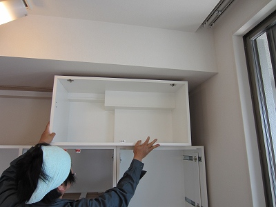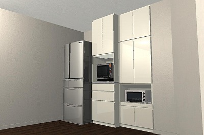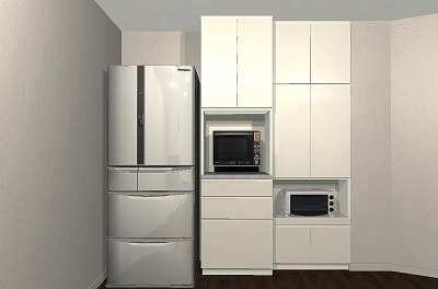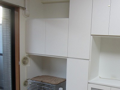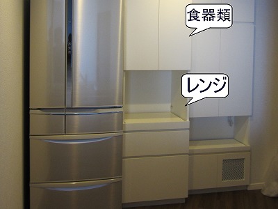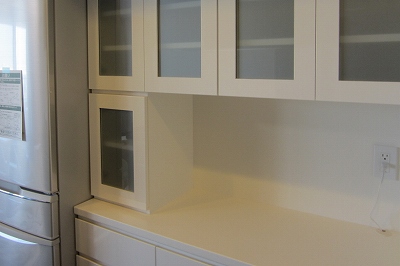 Nさん宅の食器棚プラス冷蔵庫上収納です。