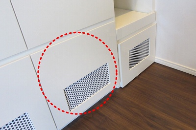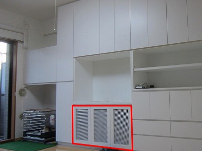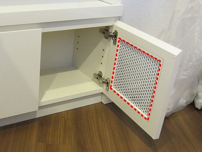 ほか目立つところでは中心部収納が金属ネット扉に。