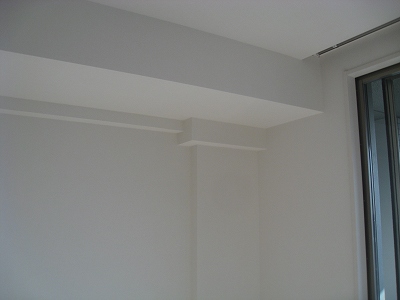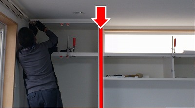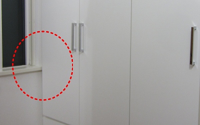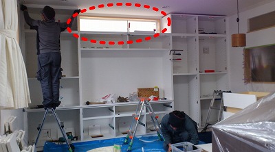 窓と窓の間に設けた収納は存在感ありすぎるので