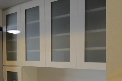 左右、縦方向の飾り棚には木枠のガラス扉を装着。
