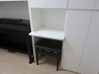 ピアノ上はオープンスペースで飾り棚(可動式)になっています。