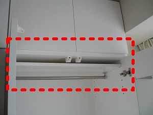 ハンガー掛けのパイプは可動棚に装着し