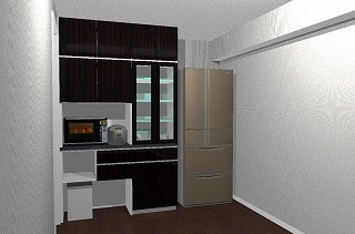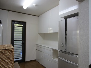 足立区のHさん宅に施工したキッチン食器棚です。