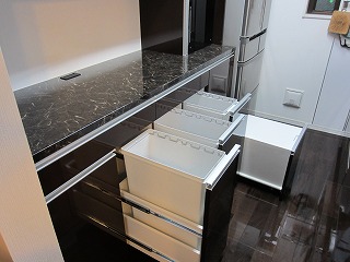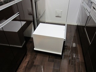 また、反対左側は分別ゴミ箱のためのワゴンです。