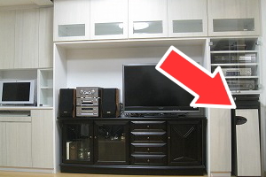 おとなりスピーカーネット扉の中にはミニコンポが収納されます。