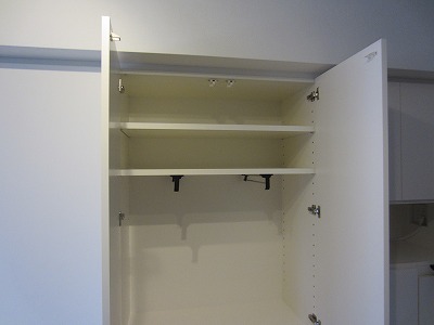 中段、向かって左の扉の中にはモップなどの掃除用具を収納し