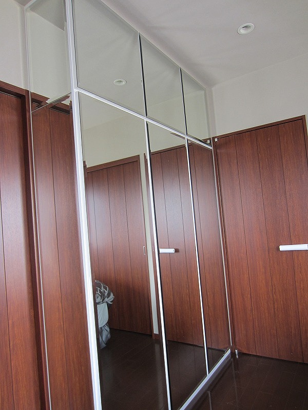 側面も、天袋も、その天袋の側面もすべて鏡。
