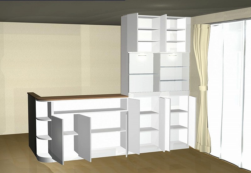 「カウンター下収納」プラス「飾り棚」です。