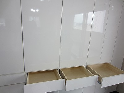 奥行き浅い部分に設けた引出しには
