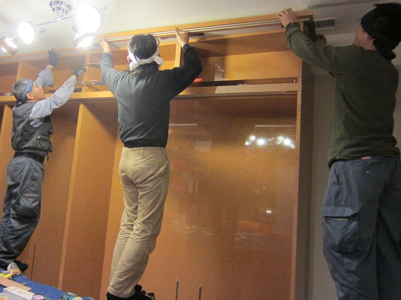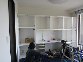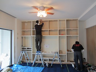 そして棚となるパネルを現場で組み上げし
