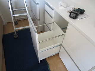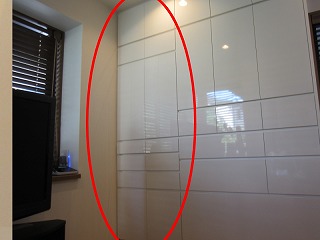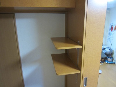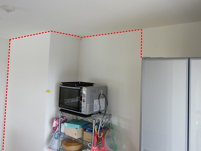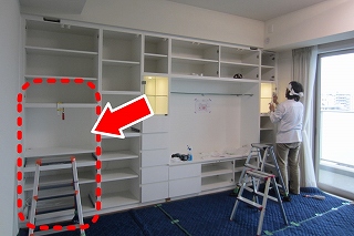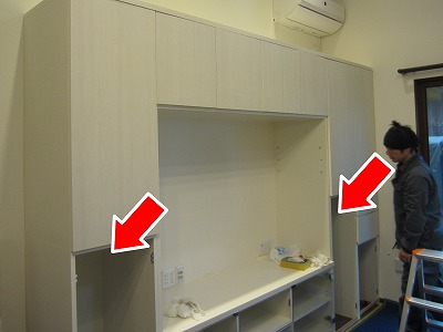 冷蔵庫のとなり、奥行きが段違いになっている箇所への設置です。