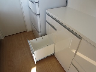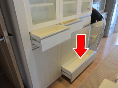 おとなり大型引出しは分別ゴミ箱を収納。