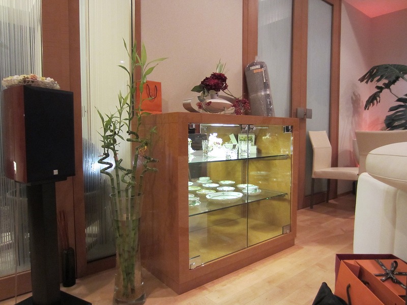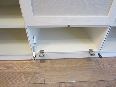 一番上の段は中が見えるよう天板をガラスにしました。