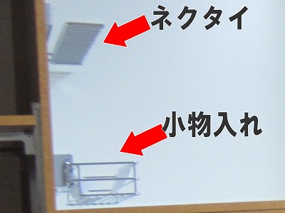 内部にはネクタイ掛けと小物入れカゴを装着。