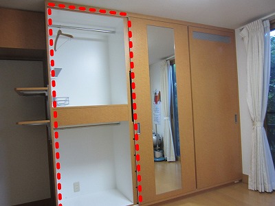 同じ部屋の対面には洋服用クローゼットです。