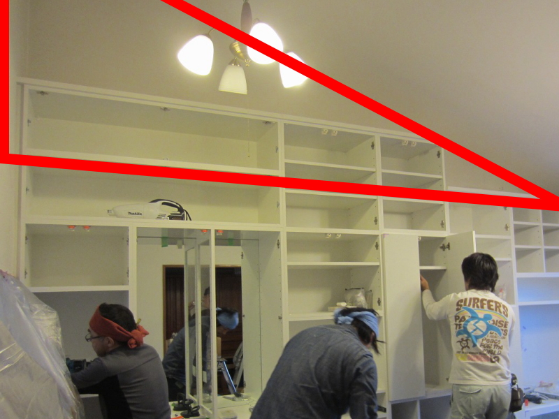 高いななめ天井の下へ設置となりました。