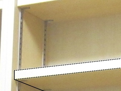 棚の板は重みでのたわみ防止に金属バーを内蔵。
