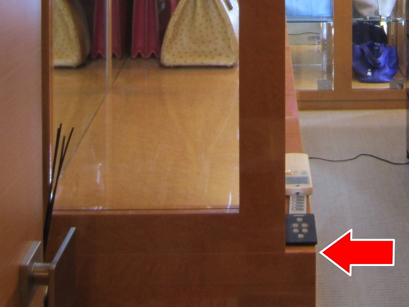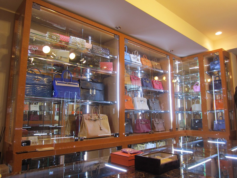 バッグ収納と同じくガラス扉で木枠は無し。