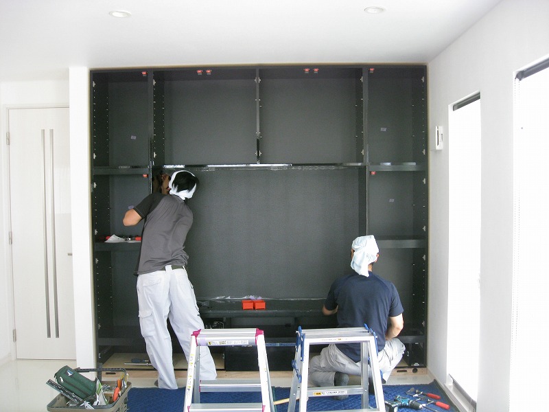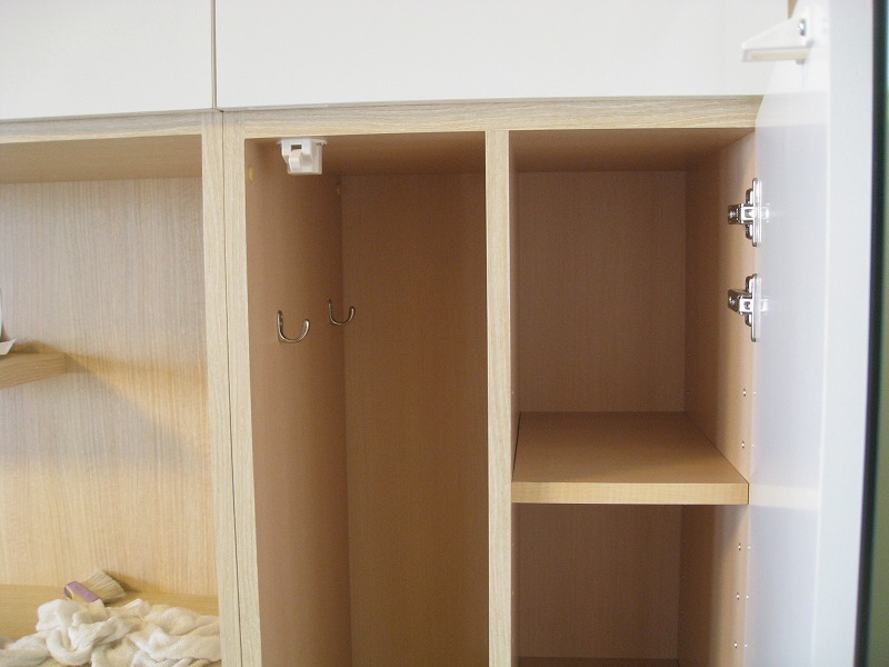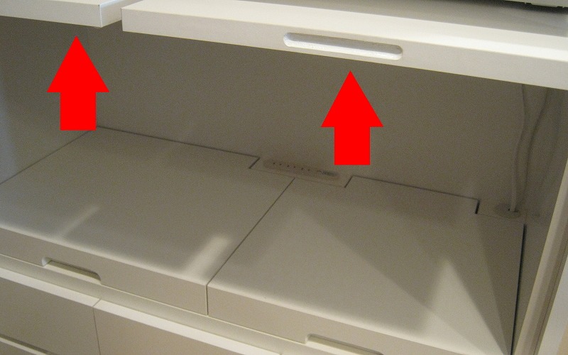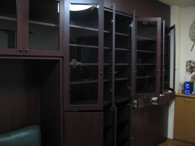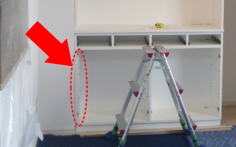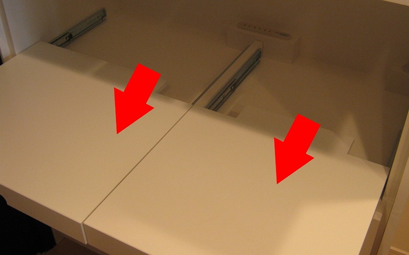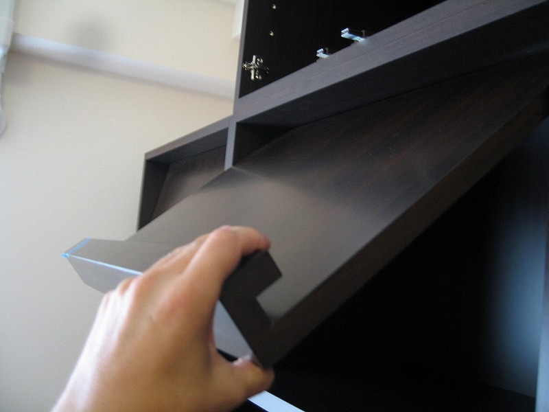 側面の脱着板に可動棚をつける都合で二重板になってます。