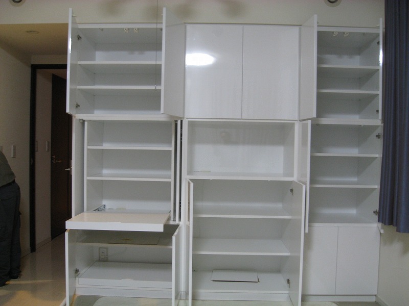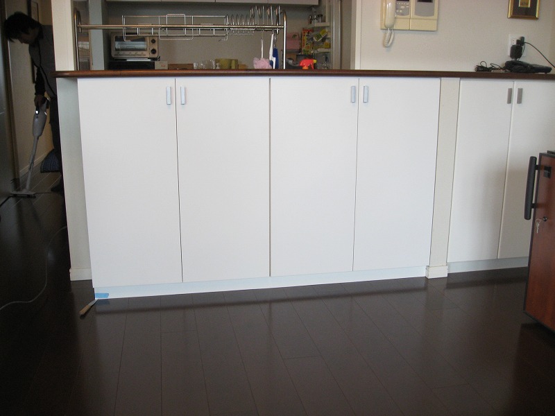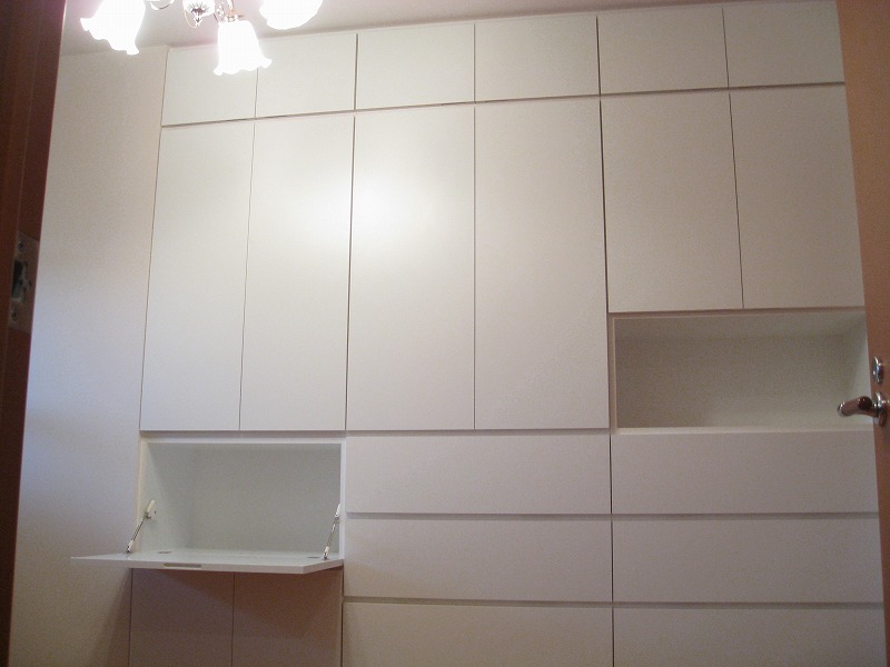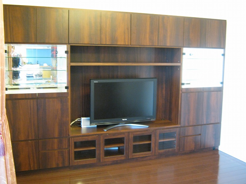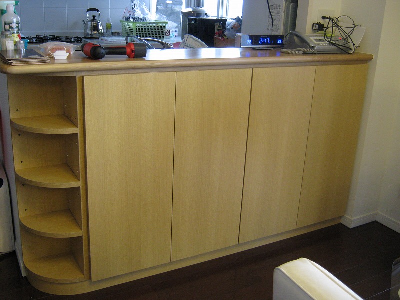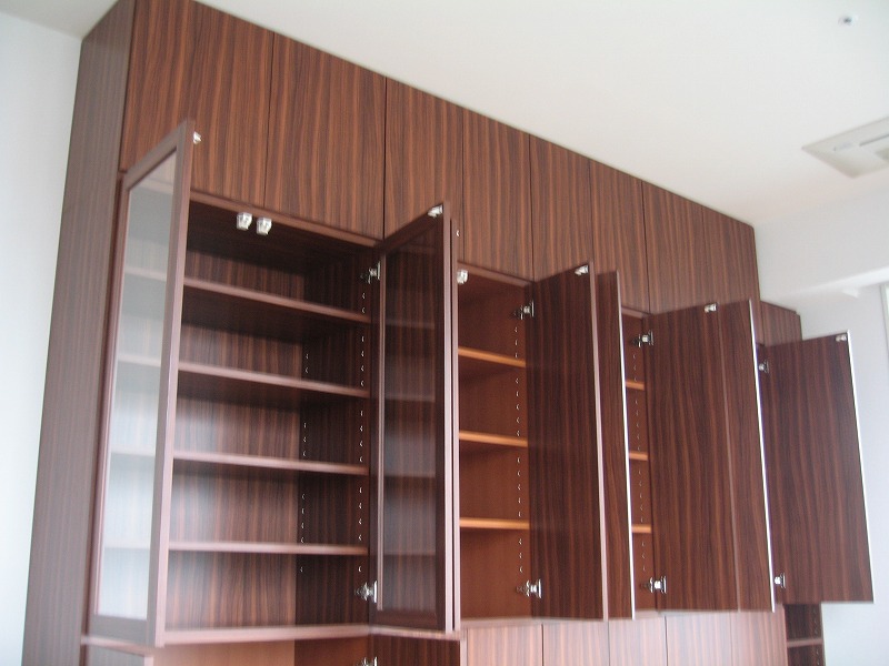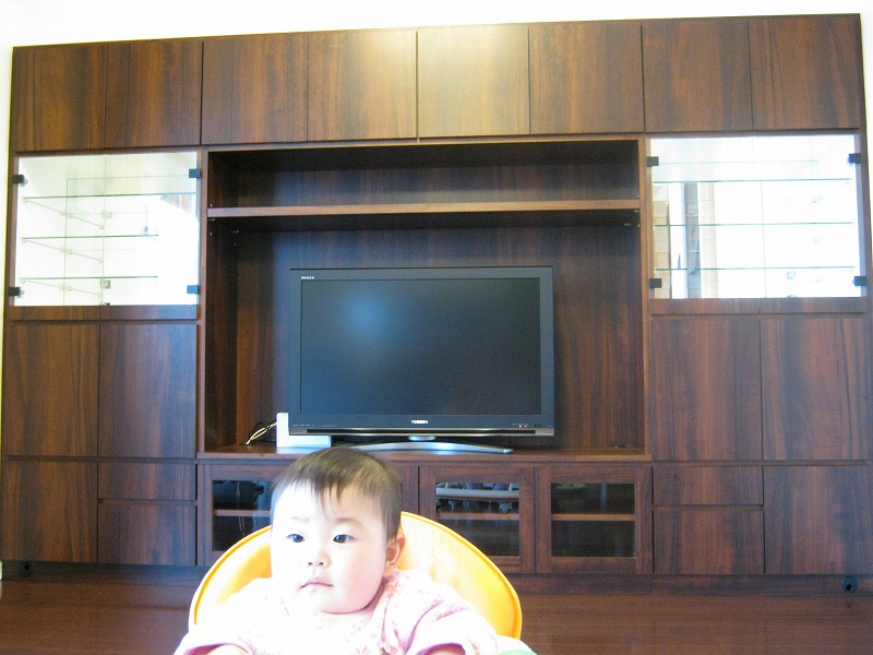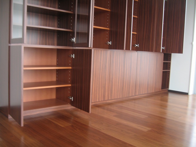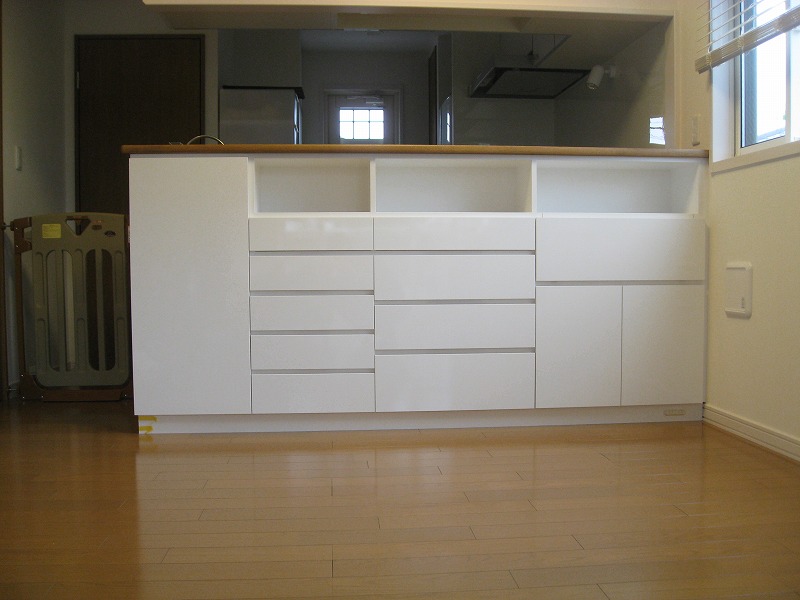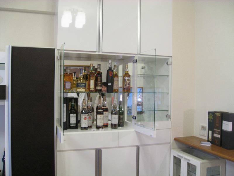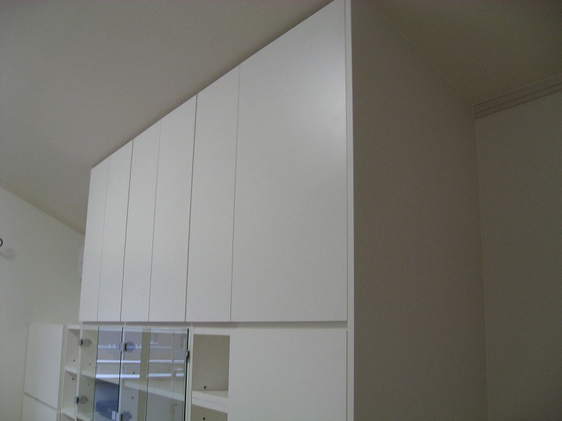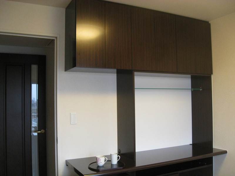 食器棚の戸はリビング壁面収納棚にあわせ、