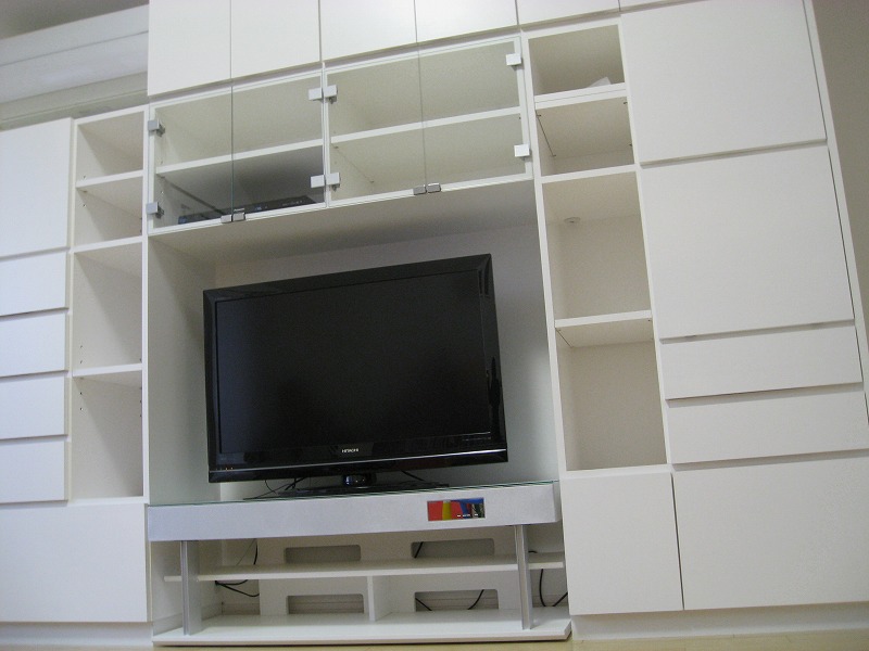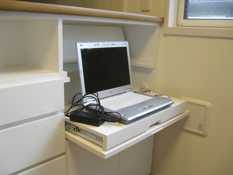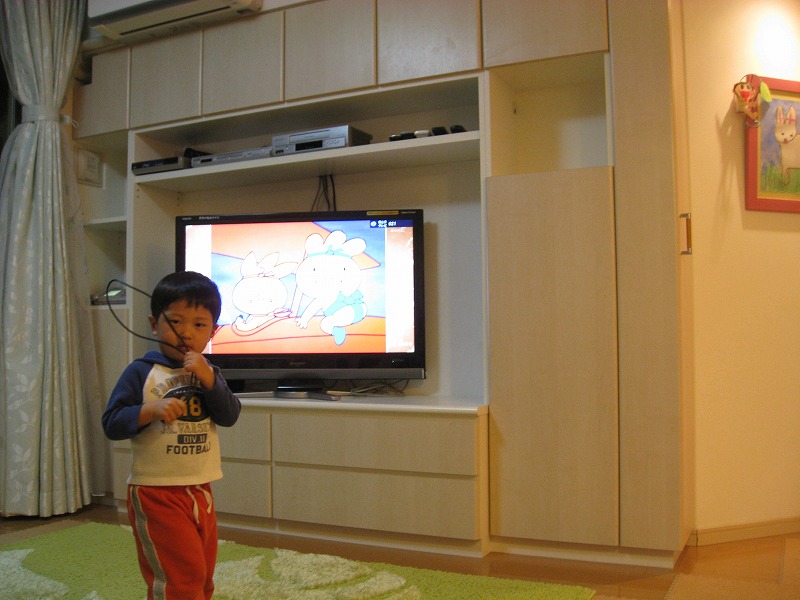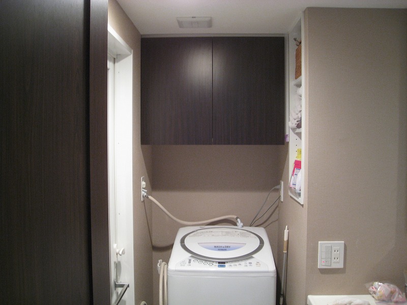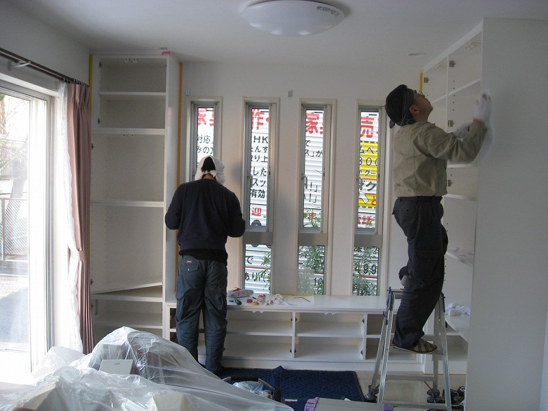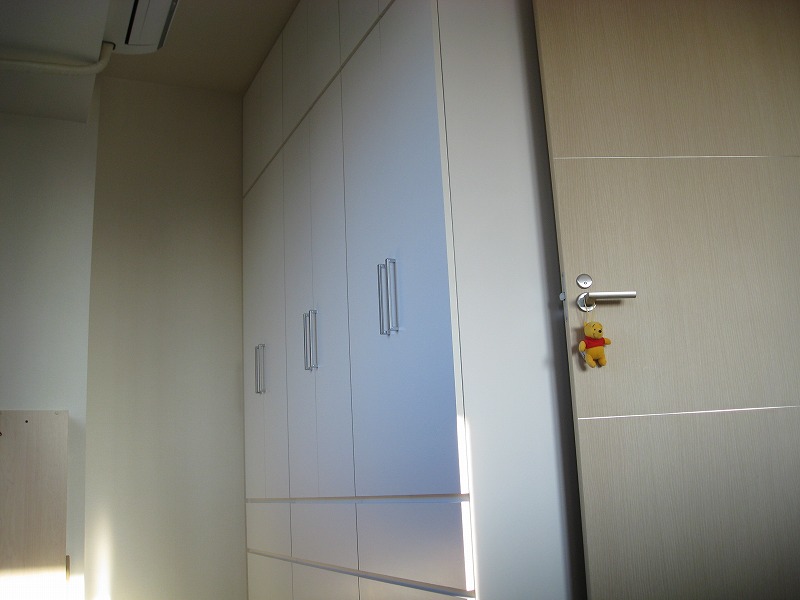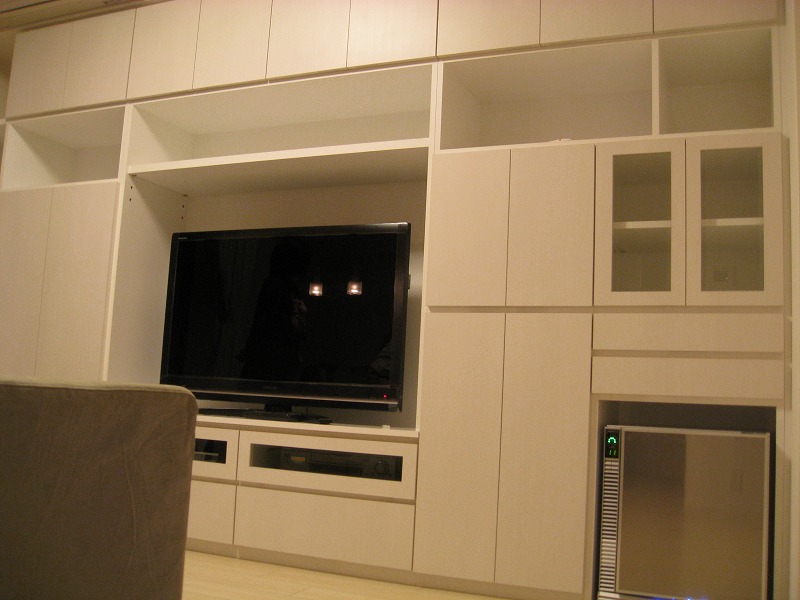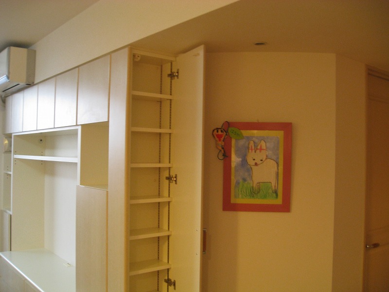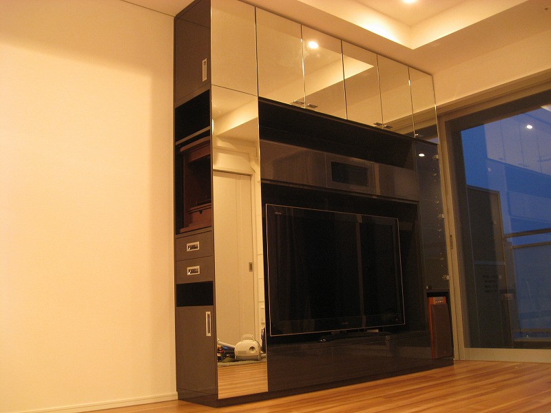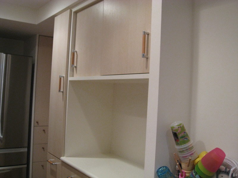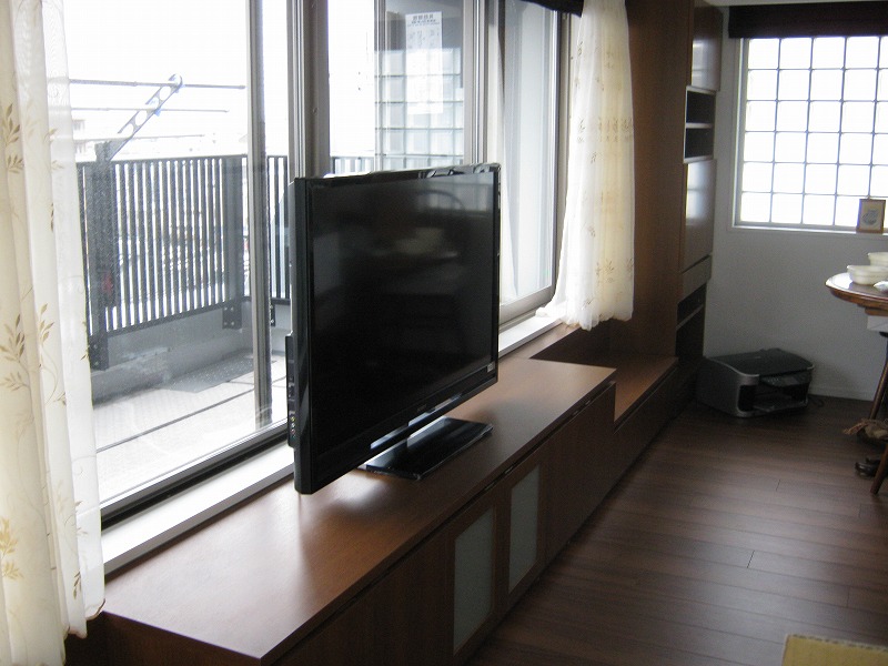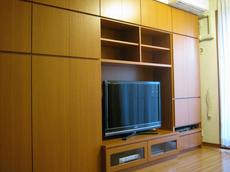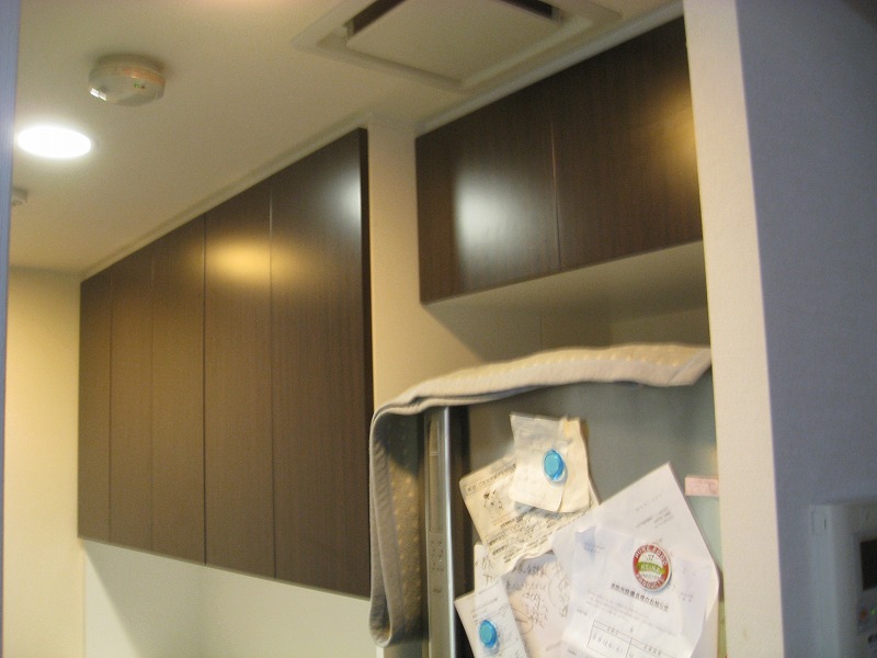 食器棚の戸はリビング壁面収納棚にあわせ、