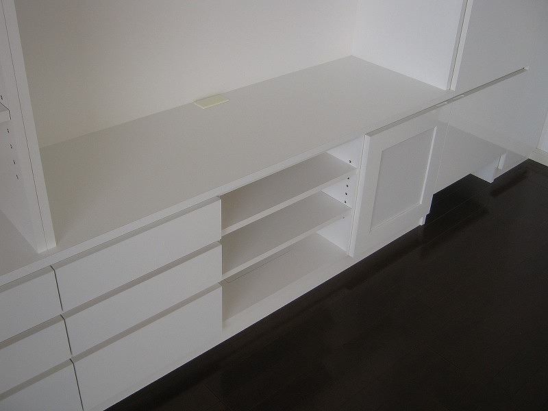 中央、テレビスペース内の可動棚は