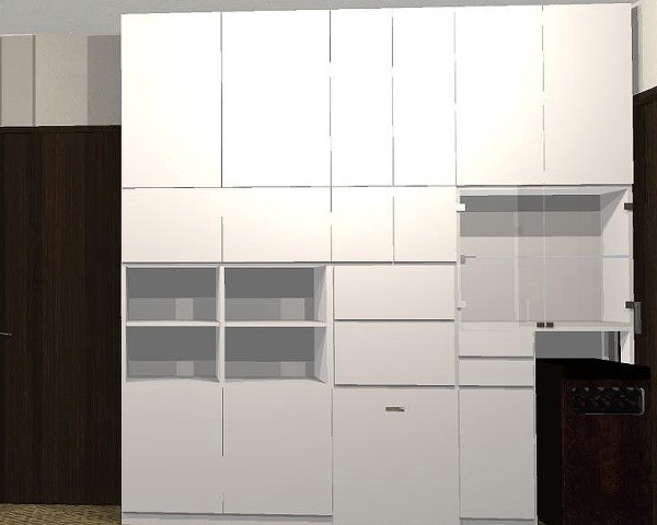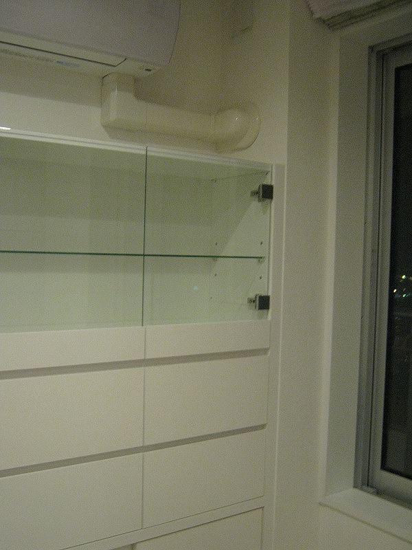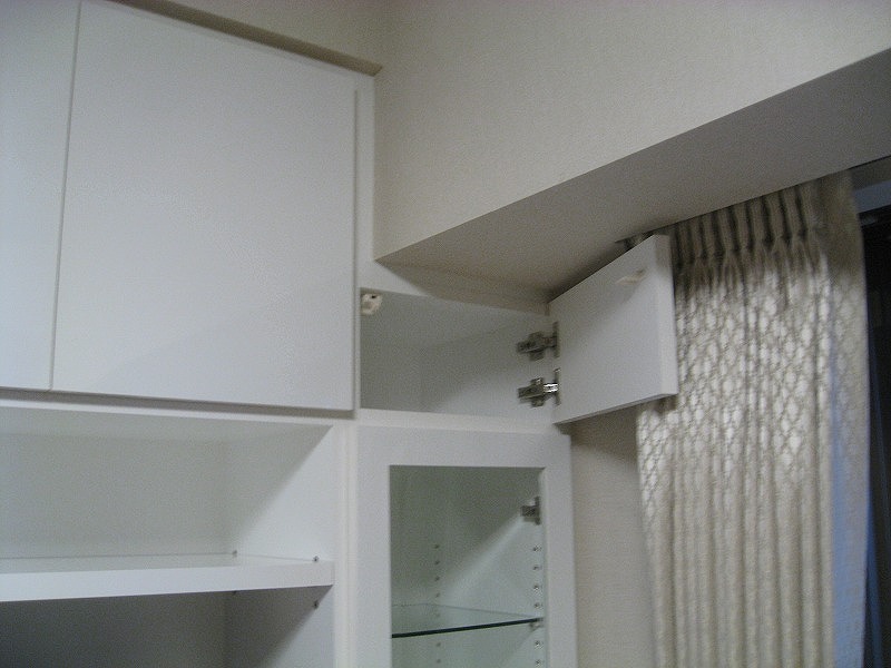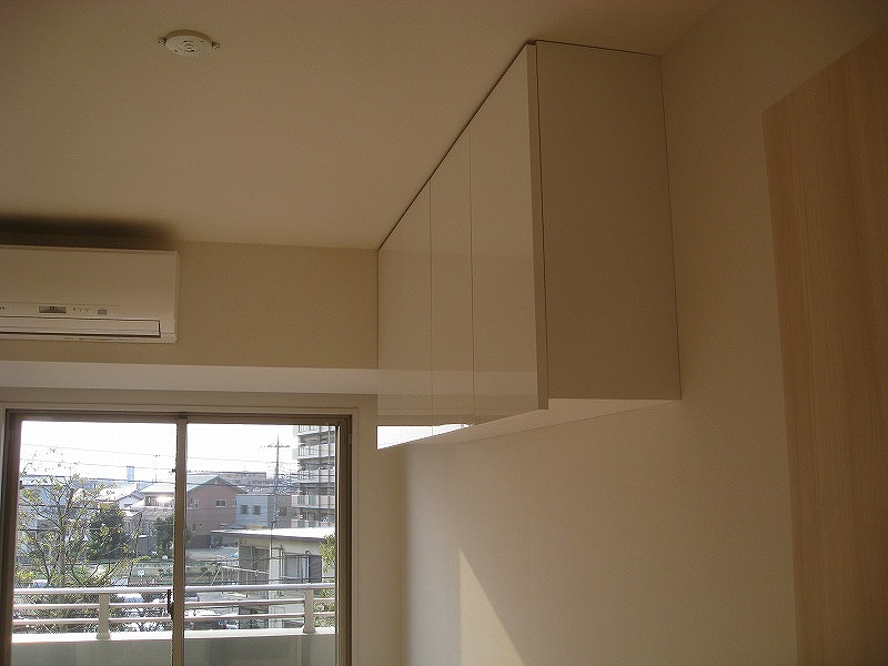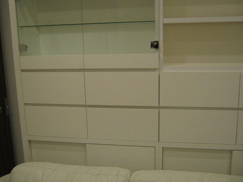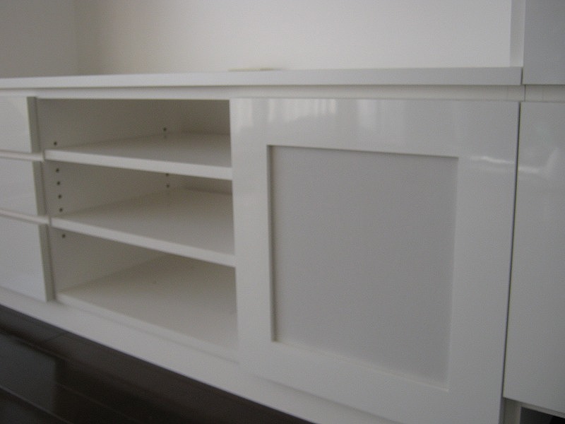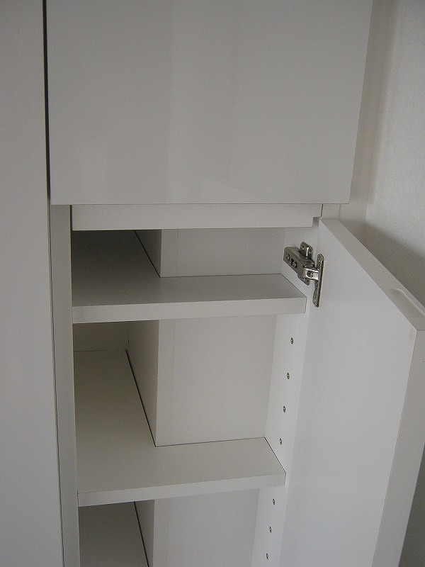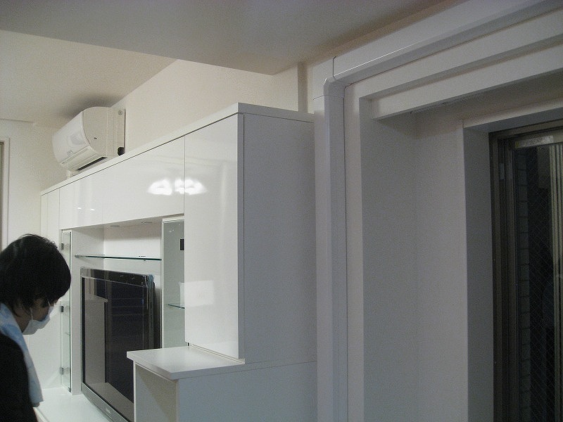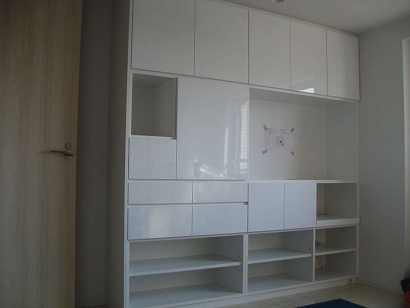 ▼こちら鏡面ホワイトの壁面収納は