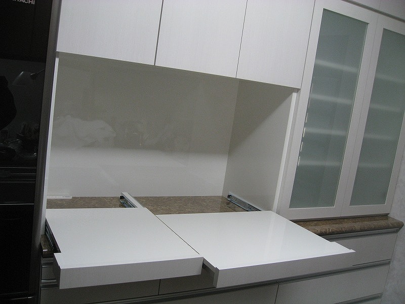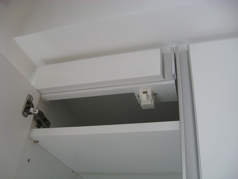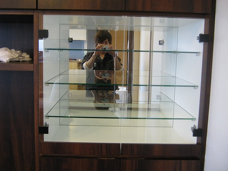 「ミラー(鏡)ばり」で棚はガラス製です。